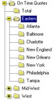 The On Time Quote Matrix report by Office and Region has summaries for regions. To display the report for a region, double-click on the region node in the Table of Contents. To show the report for an office only, click on the office node.The other two reports -- by End Result and by Profit Center -- don't have any expansion capabilities.