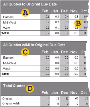 The last section shows the actual number of Coverage Groups that were quoted on time for this market segment, and out of those, the number of Coverage Groups that were missing information.