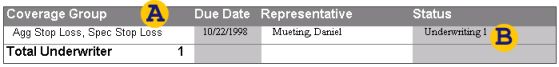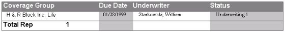 - To see a list of Coverage Groups that are marked as target for this Rep or Underwriter, click on a Rep's or an Underwriter's name.