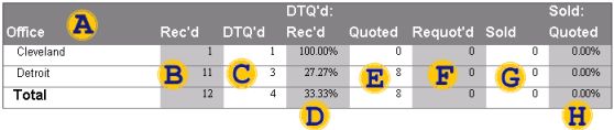 DTQ'd The number of Coverage Groups1 that were declined in an office in which their RFP-Received Date was the same month, as well as a total for all offices. A Coverage Group is declined if its Outcome code is set to DTQ.